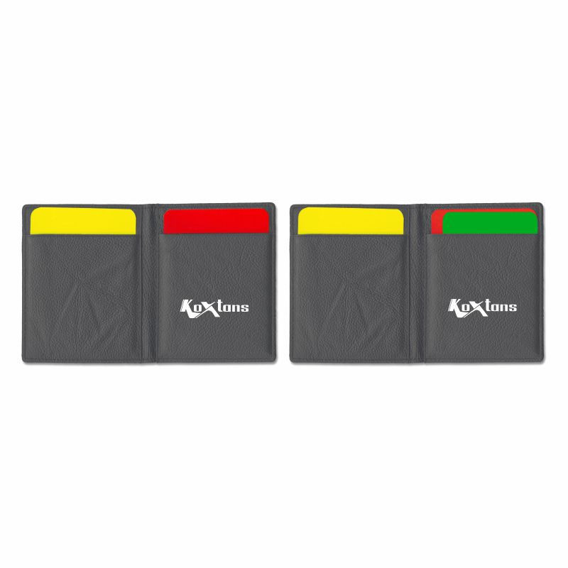 A: This referee wallet is designed to hold 3 cards – typically red, yellow, and green.