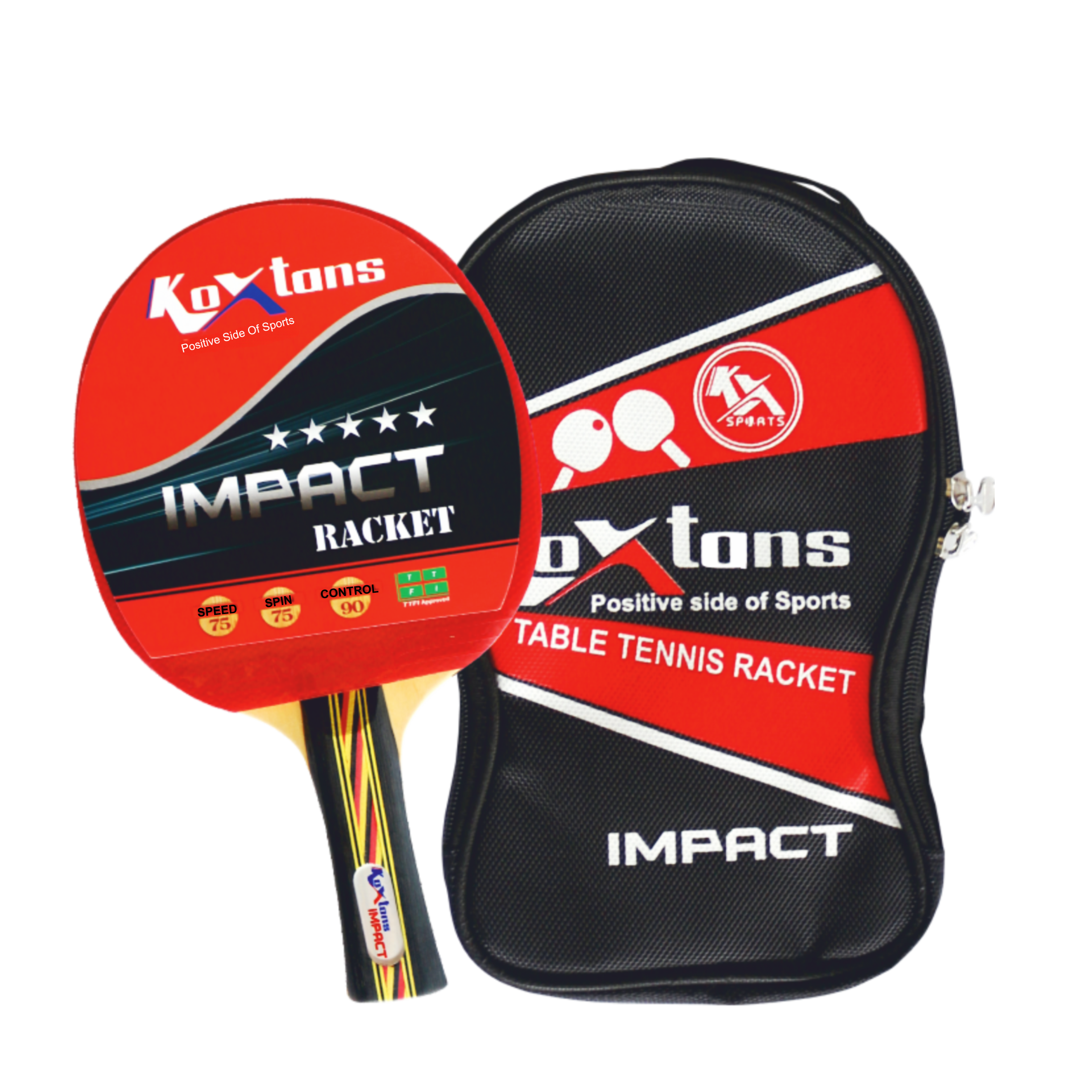 Introducing the Koxtons TT BAT - IMPACT (I.P. 5 Pcs) set — the perfect table tennis bat combo for schools, clubs, and serious recreational players. Crafted with a strong wooden blade and high-quality rubber surface, these bats offer excellent ball control, grip, and durability. The flared handle ensures a firm hold during intense rallies, making them ideal for regular practice sessions and semi-professional gameplay.
