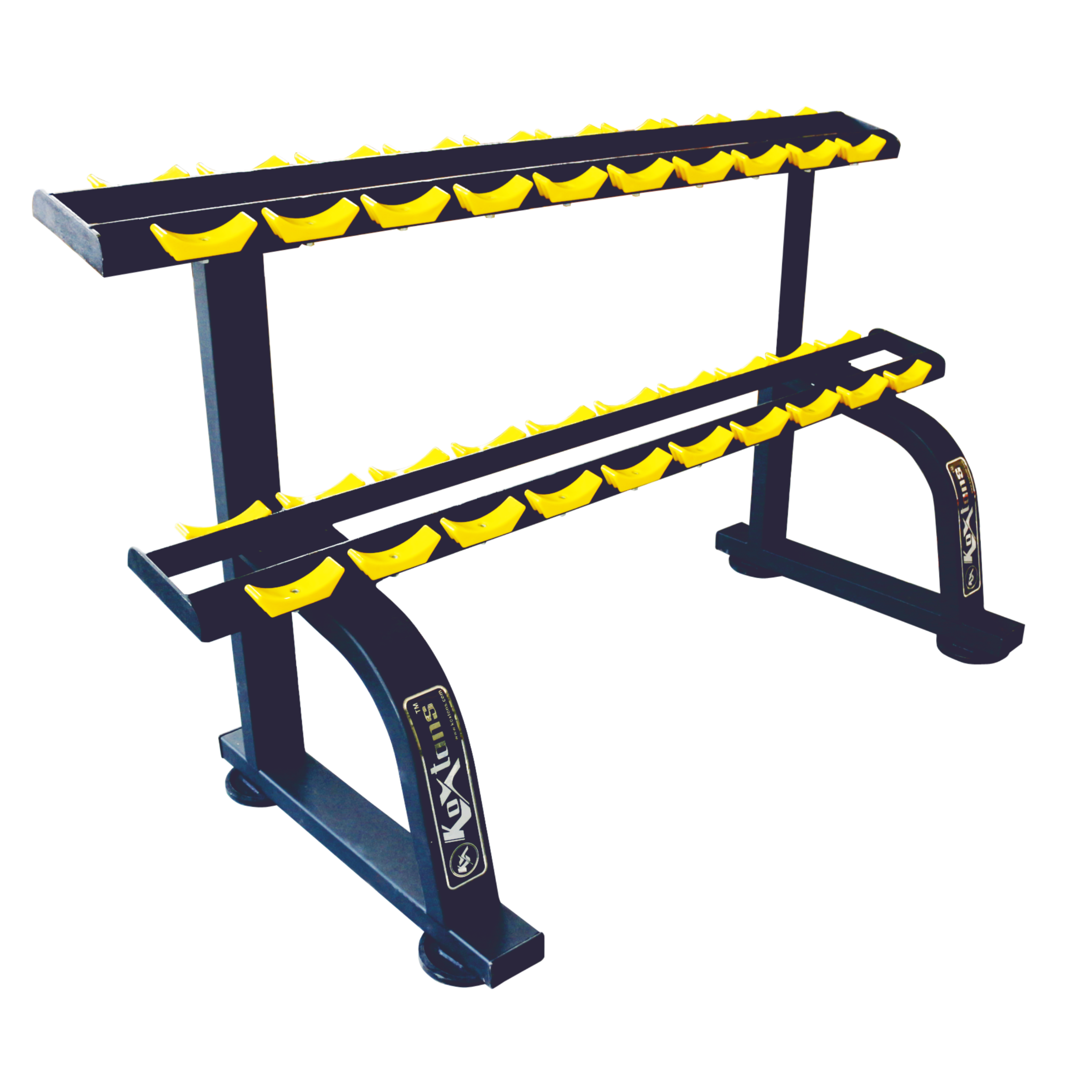 With two wide tiers, it provides ample space for storing multiple pairs of dumbbells without taking up much room, making it perfect for home gyms, PT studios, or compact fitness zones. The angled shelf design ensures easy access and prevents dumbbells from slipping or rolling.