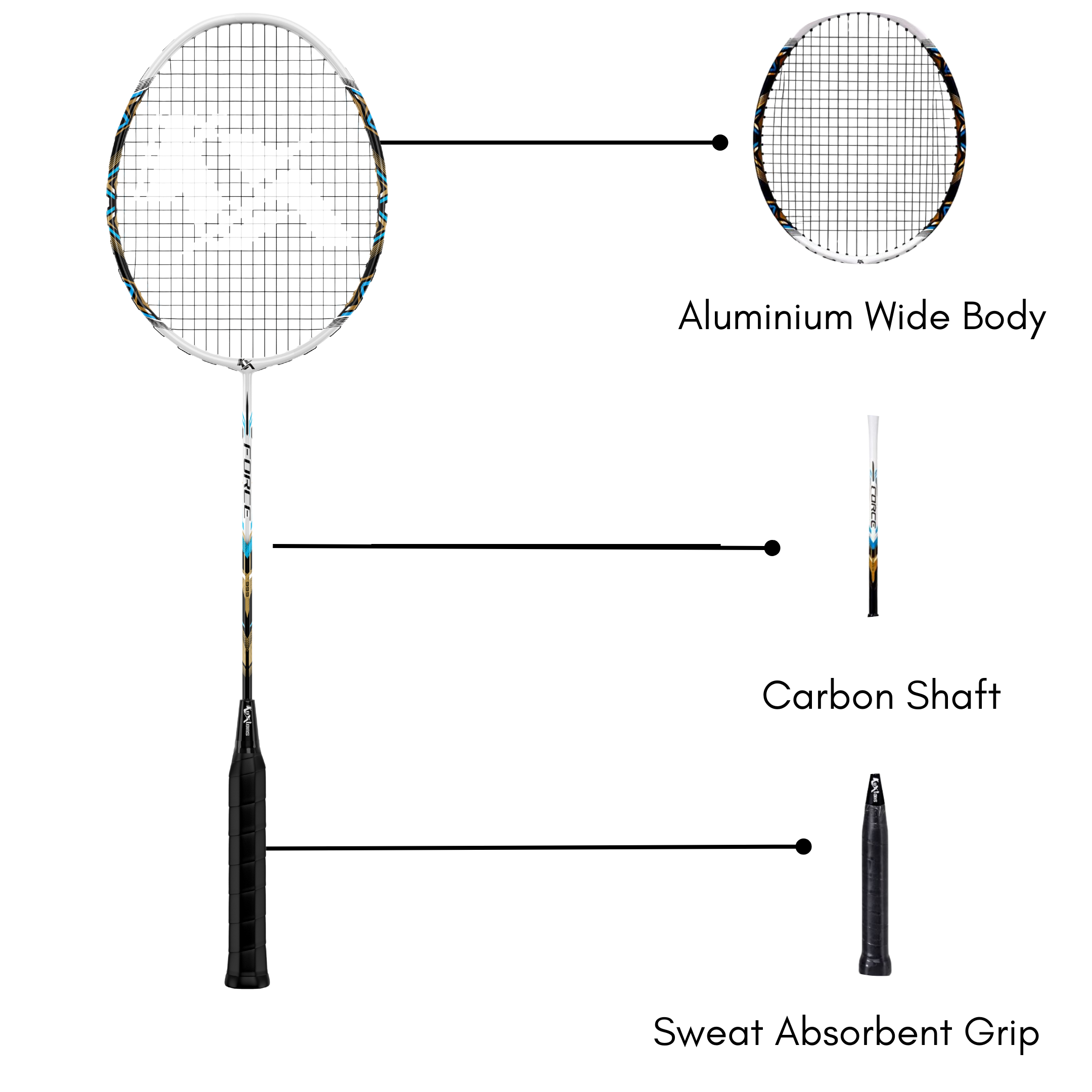 Featuring an isometric head shape, the Force 999 offers a larger sweet spot, allowing players to generate better power and accuracy even on off-center hits. With a weight range of 92–95 grams, the racket maintains a lightweight yet balanced feel, supporting quick reactions, strong smashes, and controlled defensive play.