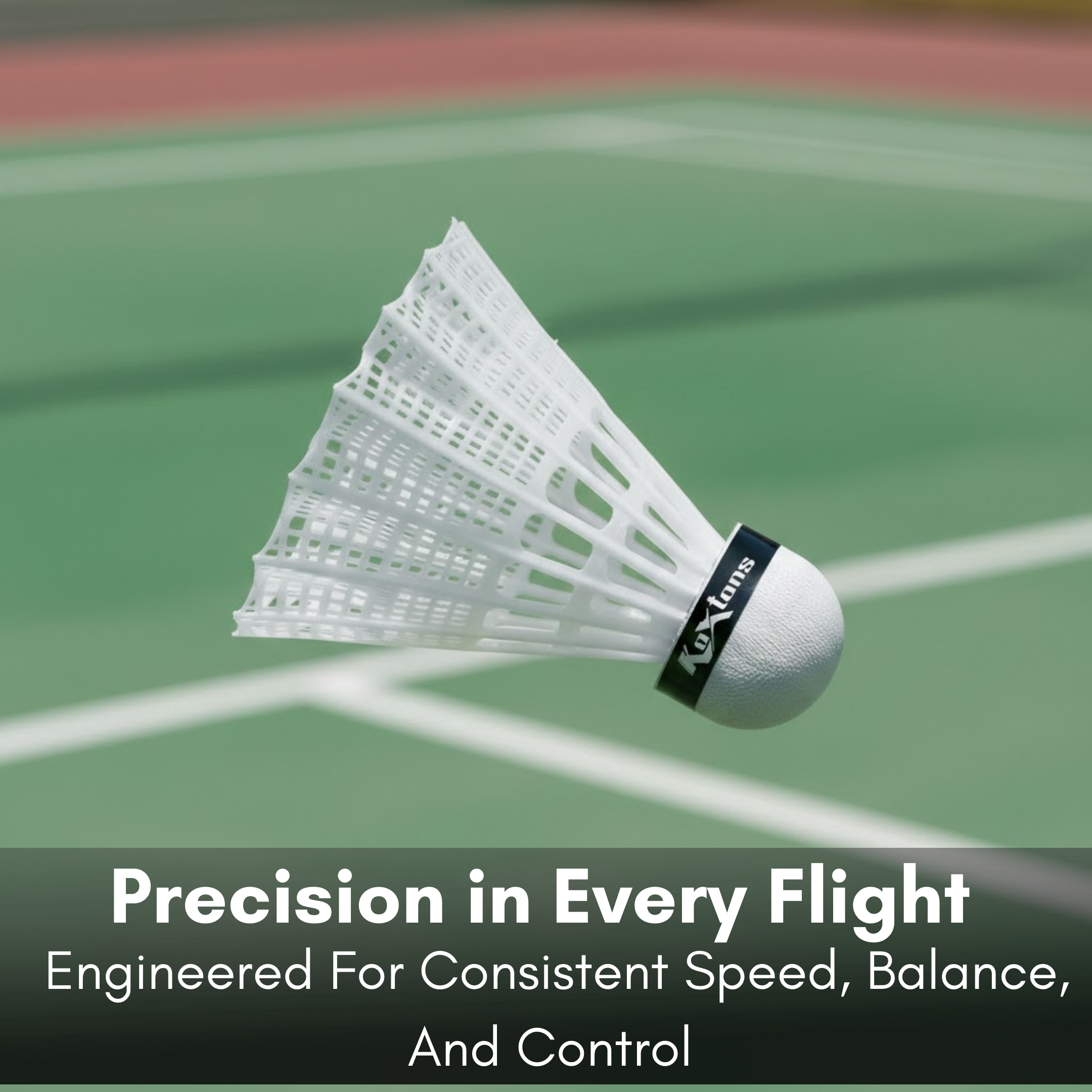 The Koxtons KOX-200 Nylon Shuttlecock is designed for badminton players seeking durability and consistent performance during training and recreational play. Featuring a high-quality nylon skirt and a fiber cork base, this shuttlecock ensures reliable flight stability and longevity.