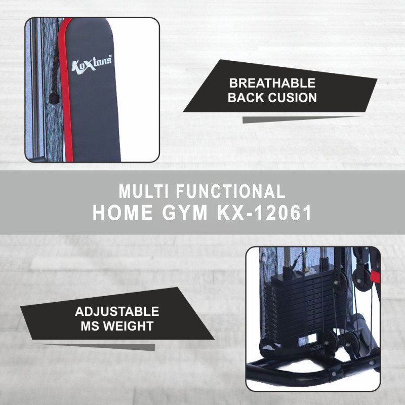 Take charge of your fitness journey with the Koxtons KX-12061 Home Gym, a compact and versatile strength training machine made for home environments. Engineered for full-body workouts, this multi-gym system enables you to train your chest, back, arms, legs, and core with one unit.