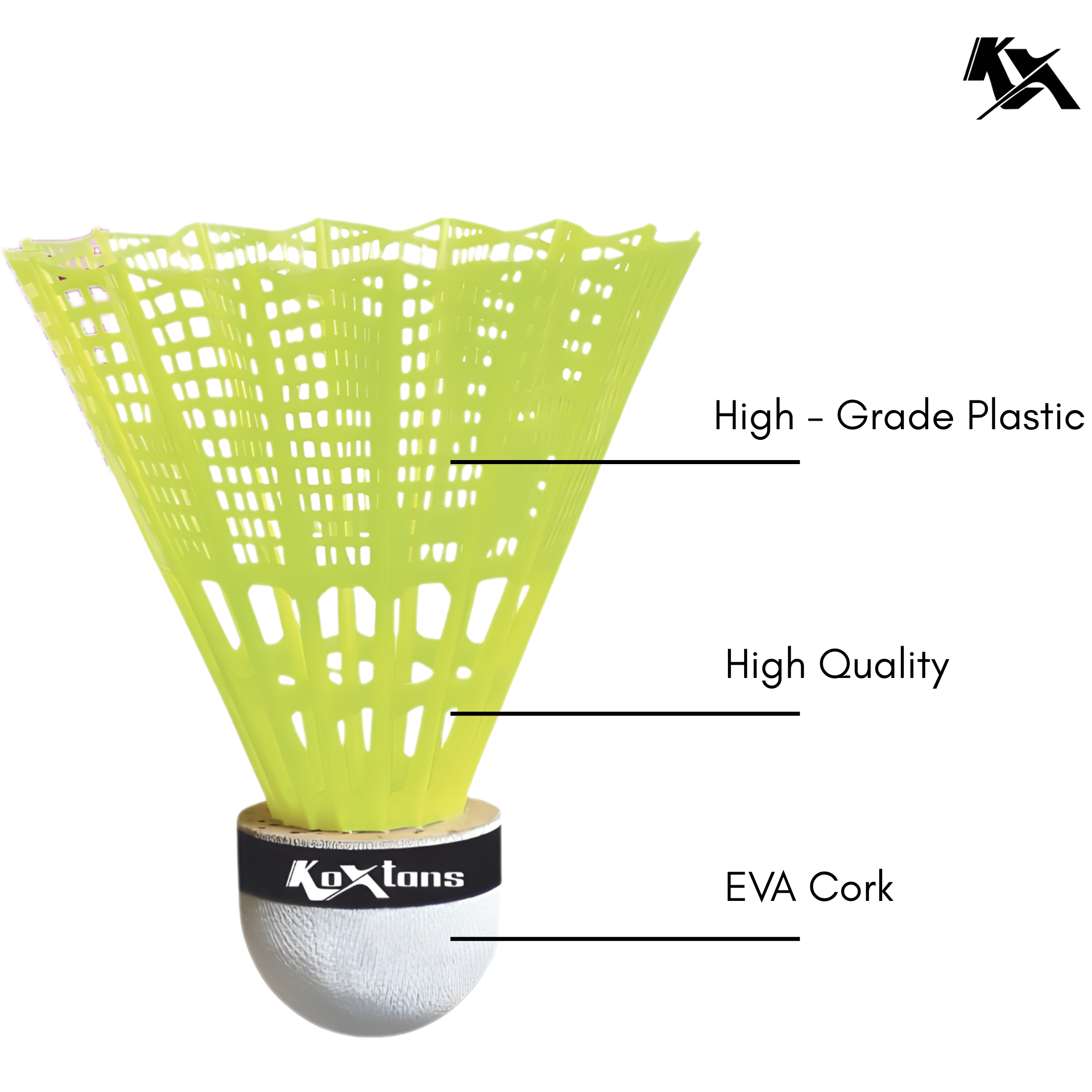 Koxtons KOX-300 Plastic Shuttlecock (10 PCS BOX) is specially designed for training sessions, casual matches, and club-level play. Made with a durable plastic skirt and a sturdy synthetic cork base, it offers consistent flight performance, excellent bounce, and high durability.