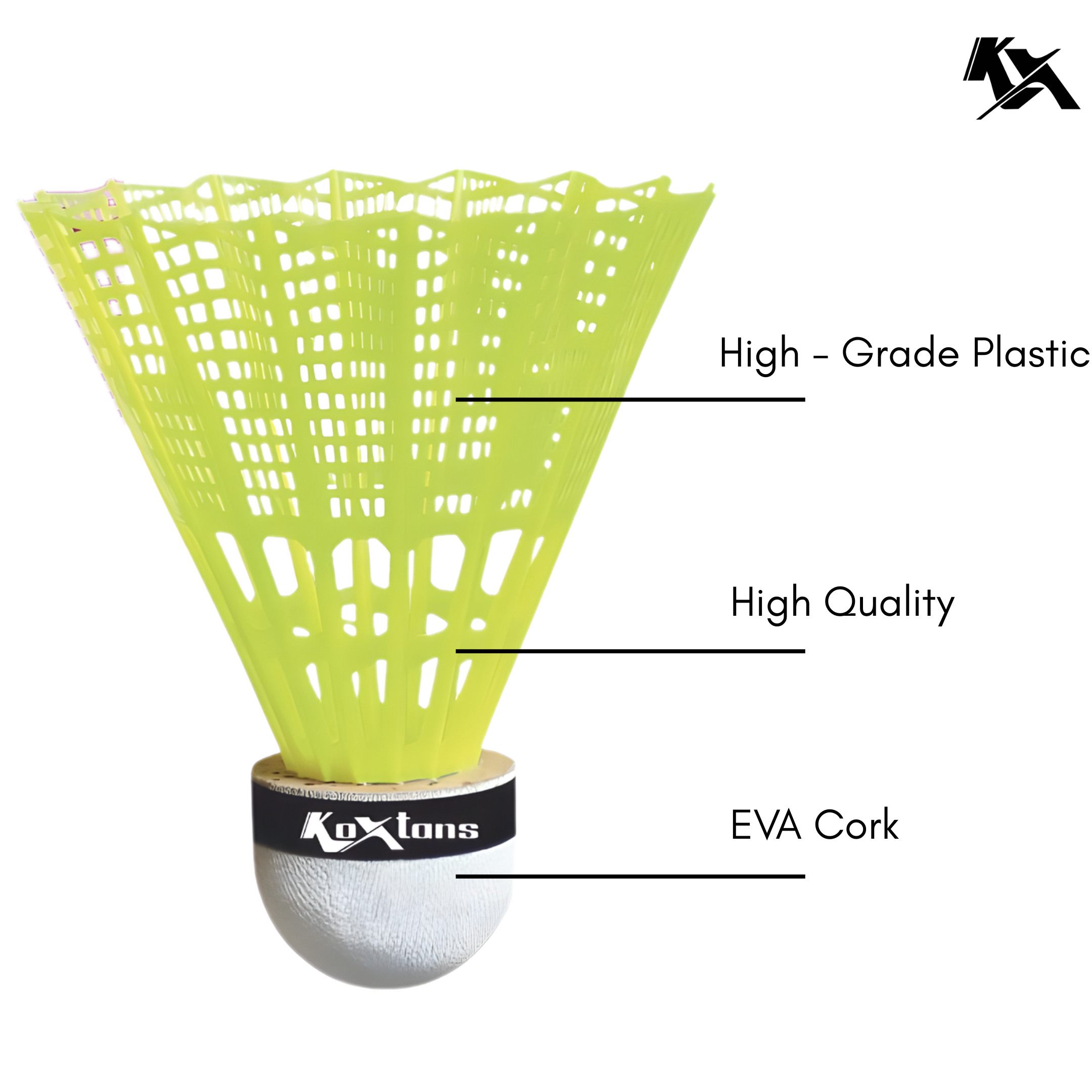 Koxtons KOX-400 Plastic Shuttlecock (10 PCS BOX) is designed for players who demand both durability and performance. Built using a premium-grade plastic skirt and strong synthetic cork base, this shuttlecock delivers impressive stability, consistent flight, and enhanced durability, even with heavy use.