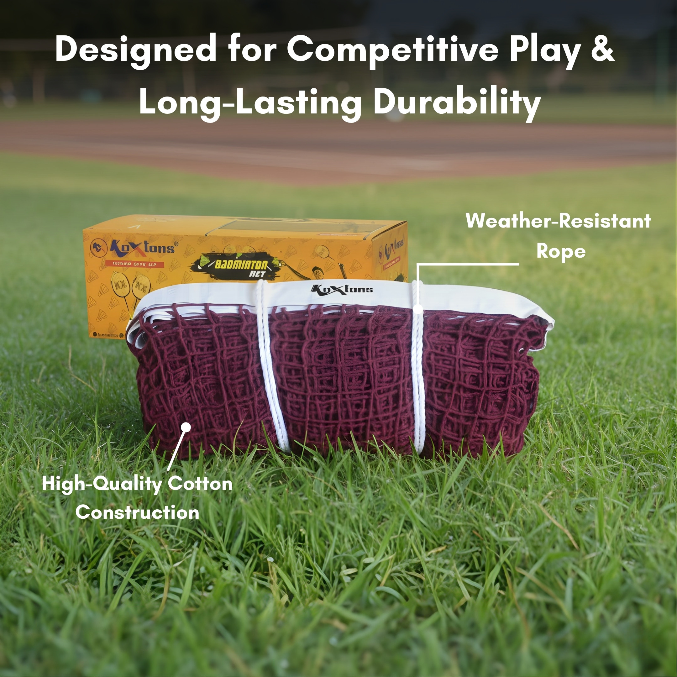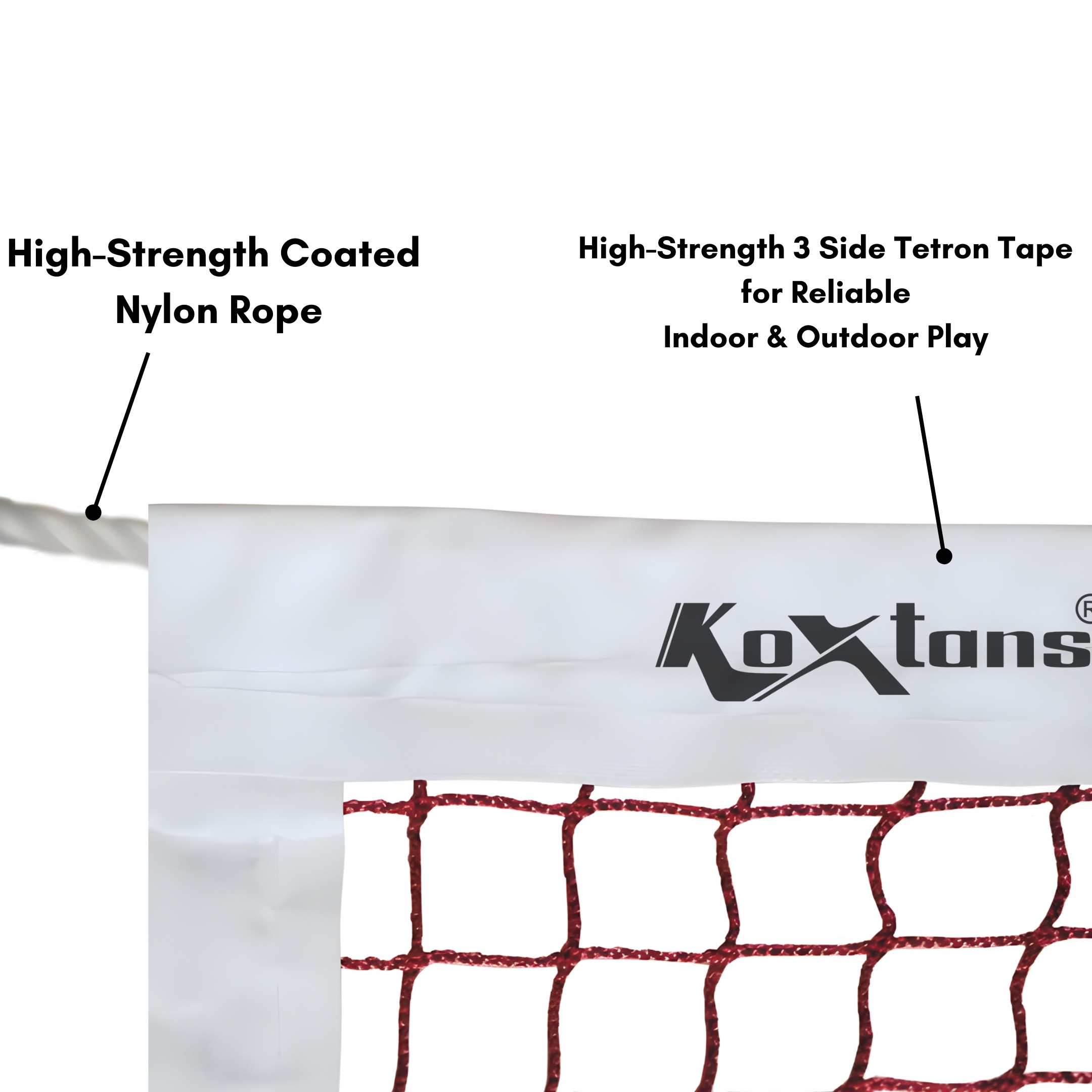 The Koxtons BADMINTON NET - TOURNAMENT COTTON is crafted for serious badminton play, whether it's a school tournament, coaching center, or club-level competition. Made from premium cotton cord, this net offers excellent tension, lasting durability, and superb shuttle visibility.