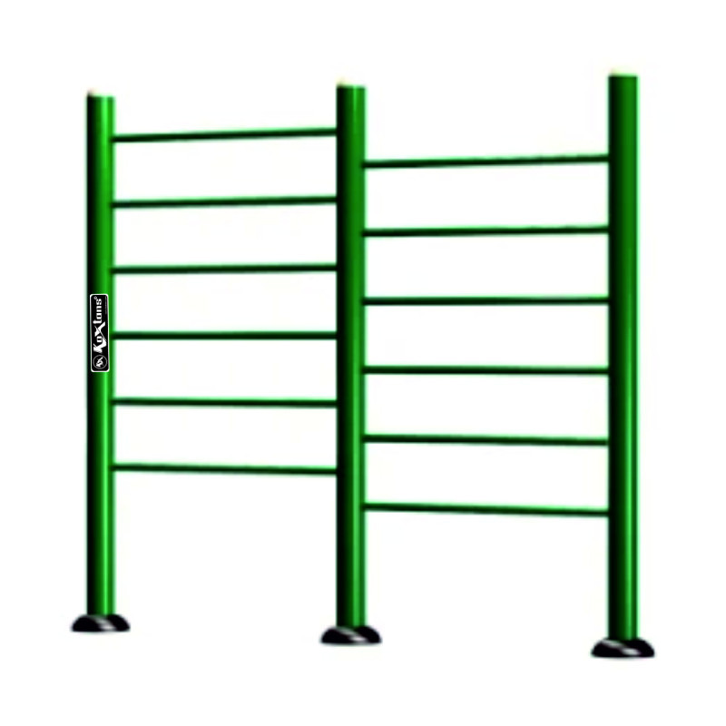 The Koxtons Wall Bar Double is a professional-grade outdoor fitness structure designed for full-body stretching, climbing, and functional strength training. Manufactured with a 114mm high-quality steel mainframe, this double ladder setup provides enhanced stability and dual-user capability. The structure is custom powder coated (80–120 microns) to ensure long-term durability, weather resistance, and protection from rust or corrosion.