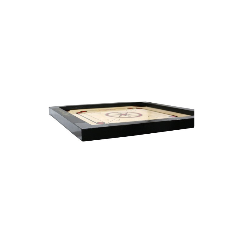 A: This is a small size carrom board with a 1.5-inch border cut. It's designed to be compact yet provides great playability, making it perfect for home use.