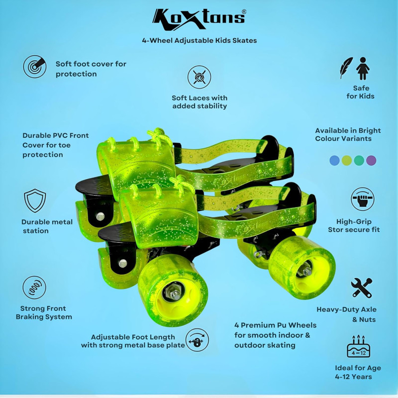 Built with a performance-grade, supportive boot, Pro Speed skates offer strong ankle support and enhanced stability during fast movement and sharp turns. The premium wheels provide smooth rolling, quick acceleration, and dependable grip on both indoor rinks and outdoor surfaces. The striking fluorescent green color gives the skates a high-energy, sporty appearance.