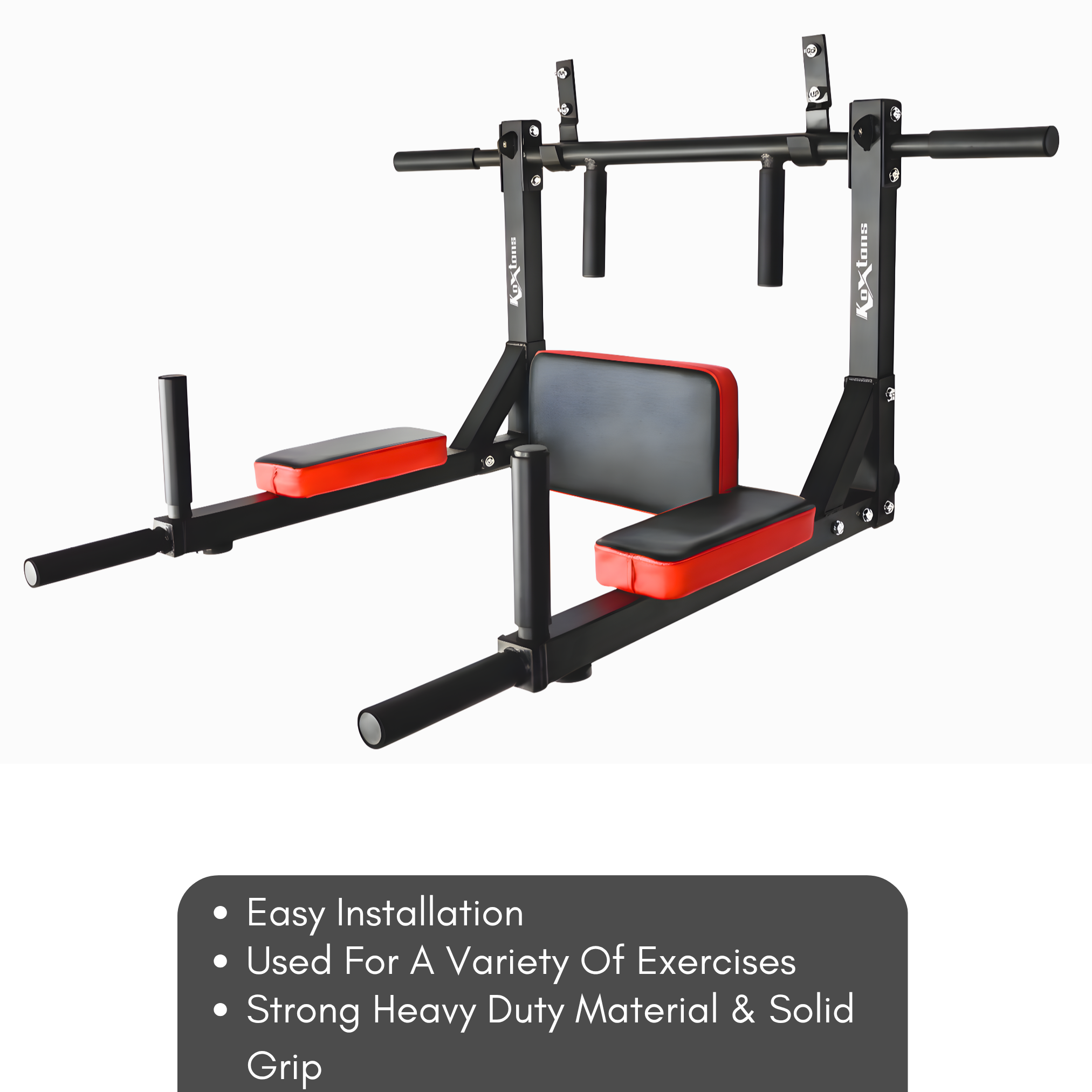 The Koxtons Dip Stand Wall Mounted ( 2 in 1 ) is a premium fitness equipment designed for strength training at home or in the gym. Built with heavy-duty steel, it ensures long-lasting durability and supports high-intensity workouts. Its wall-mounted design saves space while offering maximum stability during exercises like tricep dips, chest dips, and knee raises. With comfortable grip handles and a sturdy frame, this dip stand is perfect for targeting upper body muscles, improving core strength, and enhancing overall fitness.