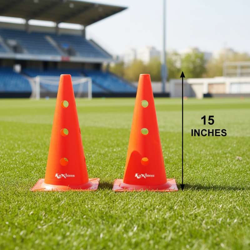 Cone Marker With Hole – 15 Inches ek high-visibility, multi-purpose training cone hai jo professional sports drills aur field marking ke liye design kiya gaya hai. Unique hole design ki wajah se ise agility poles ke saath use kiya ja sakta hai, jo training drills ko aur effective banata hai. Ye cone sports academies, schools, clubs aur institutions ke liye perfect hai jahan structured practice aur professional-level drills ki zarurat hoti hai. Durable aur weather-resistant material se bana, ye cone long-lasting aur reliable hai.