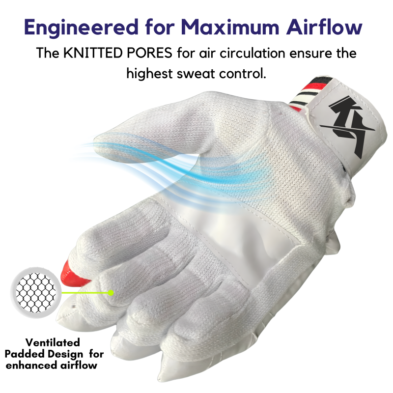 The gloves feature quality padding that absorbs impact effectively, reducing strain on the hands during long innings. A well-designed palm grip improves bat control and shot stability, while the flexible construction allows free hand movement. Breathable materials enhance comfort, making these gloves suitable for extended training and match play.