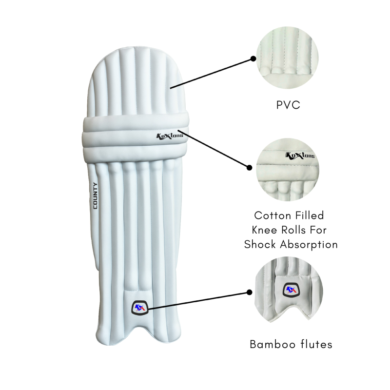 Crafted with high-density protective padding, the County leg guards effectively absorb impact from fast bowlers, helping protect the shin and knee areas from injury. The well-balanced construction ensures solid protection without making the pads feel bulky or heavy, allowing players to move naturally and play strokes freely.