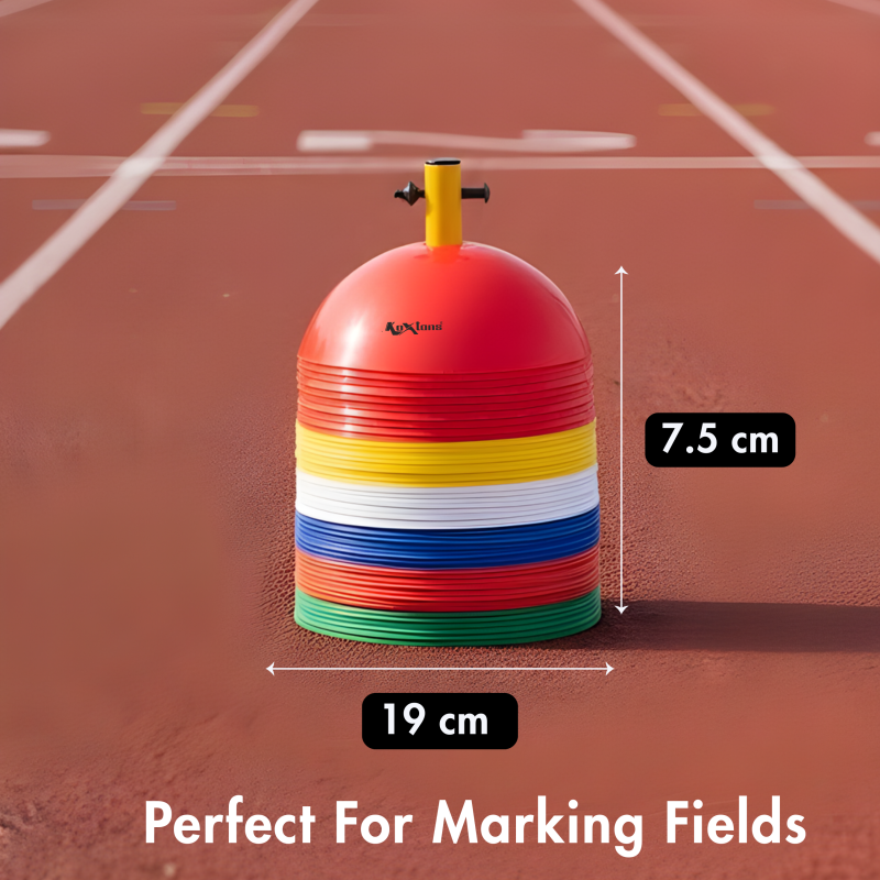 Enhance your football training sessions with the Dome Marker Cone, designed for precision and durability. Made from soft, high-quality plastic, each cone has a height of 7.5 cm and a diameter of 19 cm, making it perfect for marking out pitches, setting up drills, or creating agility courses. Available in assorted colors, these cones are lightweight yet sturdy, ideal for repeated use during training exercises. Perfect for coaches, players, sports academies, and anyone looking to organize professional and effective practice sessions.