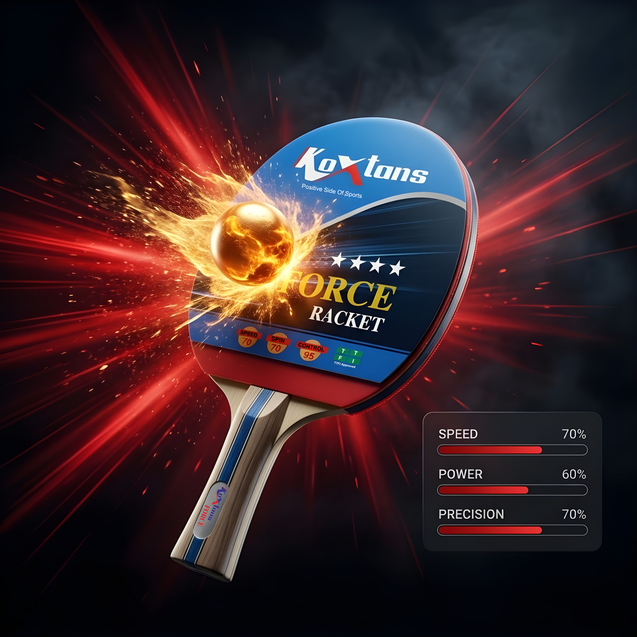 Level up your table tennis game with the Koxtons TT Bat - Force, crafted for players who demand both control and power. Its high-quality rubber surface offers excellent spin response and consistent ball contact, while the ergonomic handle ensures a firm and comfortable grip during fast-paced rallies. Lightweight and durable, this racket is perfect for beginners and intermediate players seeking to develop skills and performance. Whether for school, club, or casual games at home, this bat delivers reliability at an unbeatable value. Includes a 14-day return policy and pan-India delivery.