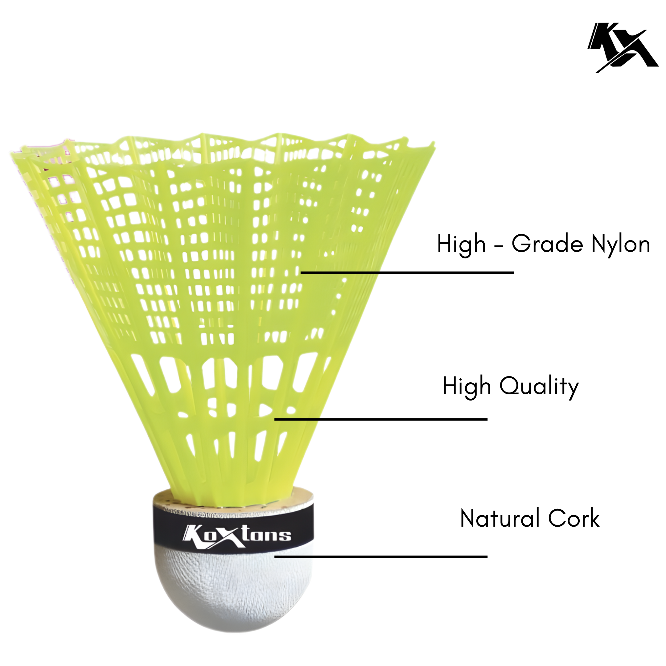 The Koxtons KOX- 888 Nylon Shuttlecock is crafted for players who need durability and consistent performance during practice and friendly matches. With a high-quality nylon skirt and a composite cork base, this shuttle maintains its shape and flight trajectory even after multiple uses.