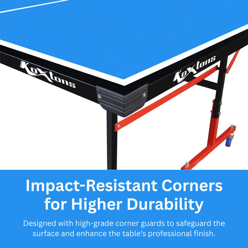 The Koxtons TT Table Club is the ideal choice for clubs, schools, and recreational areas looking for a reliable, mid-range table tennis solution. Its 18mm thick top offers a great playing experience with consistent bounce, while the foldable design allows for solo practice and space-saving storage. The table is equipped with sturdy wheels and a locking mechanism for safe movement and placement. Backed by Koxtons’ trusted durability and nationwide delivery, it’s a smart investment for training, fun, and competitive games alike. Enjoy a 14-day return policy for a risk-free purchase.