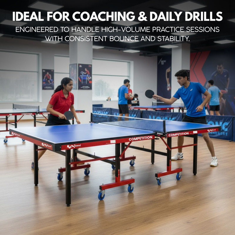 Koxtons TT Table Competition is built for serious gameplay with its robust 25mm tabletop, offering optimal bounce and durability. Whether you’re practicing at home, setting up a sports facility, or upgrading your school’s recreation space, this TT table delivers high performance. It features a solo playback mode, lockable wheels for easy movement, and a foldable design for space-saving storage. Backed by Koxtons’ trusted quality, the table also includes a 14-day return policy and Pan India delivery for a worry-free shopping experience.