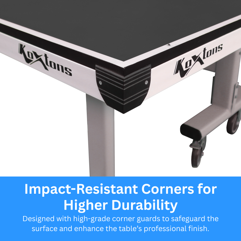The table features a durable and evenly finished tabletop that supports smooth rallies and controlled shots. Its sturdy frame and stable leg structure ensure minimal movement during play, providing a safe and reliable gaming experience. The elegant black finish gives the table a modern and premium appearance, making it a great addition to any indoor space.